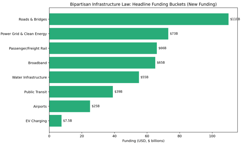 When you upgrade the country’s “bones” (roads, bridges, ports, power lines), you don’t just create construction jobs—you reduce delays, shorten delivery times, and improve productivity. That can ripple into corporate margins across transportation, manufacturing, services, and consumer goods.