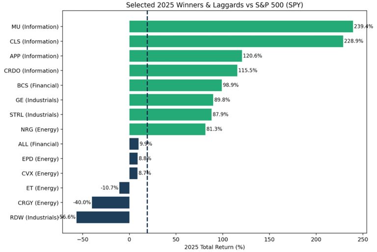 Figure 2: Q1 2025 individual stock selection year end performance -- winners and losers..